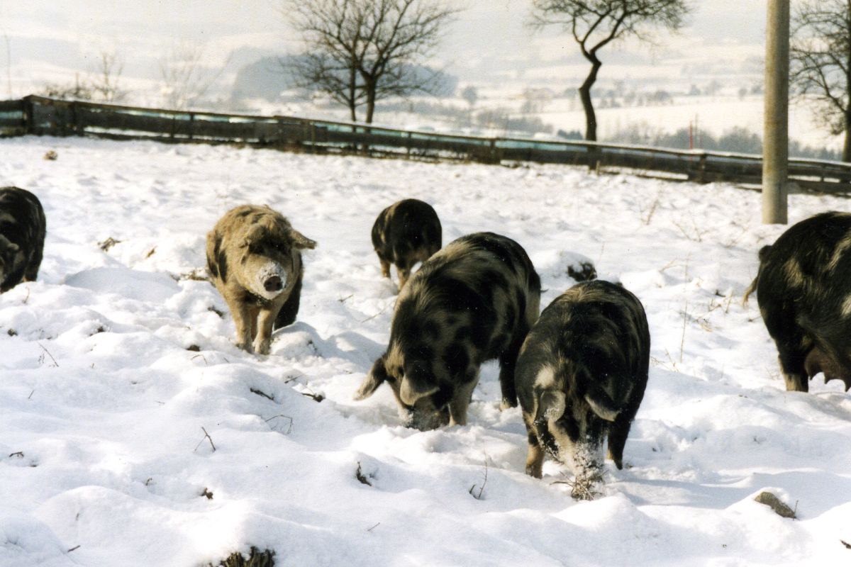 - Kräftiges, laufstarkes Fundament, gutmütiges Weideschwein.